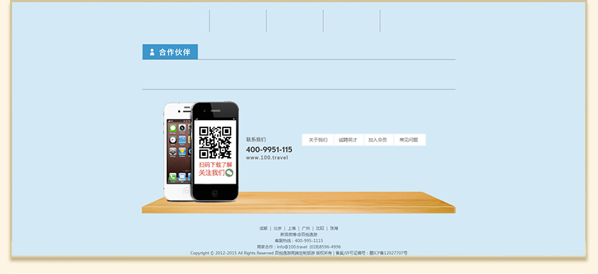 Project Description 百悦逸游于2012年初由二位资深的旅行家创办,是成都传媒集团旗下成都新闻国际旅行社有限公司的高端旅游品牌,总部位于成都高新区天府大道中段美年广场。在百悦逸游成立之前,创始团队亲自到全球三十多个国家实地考察,带着第一手的资讯和执着的信念创立了中国西部第一家真正意义上的私人定制旅行机构。百悦的旅行不是跟团挤大巴,不是十天去十个国家,更不是没完没了的... Official website address 南宁http://www.100.travel I want to share